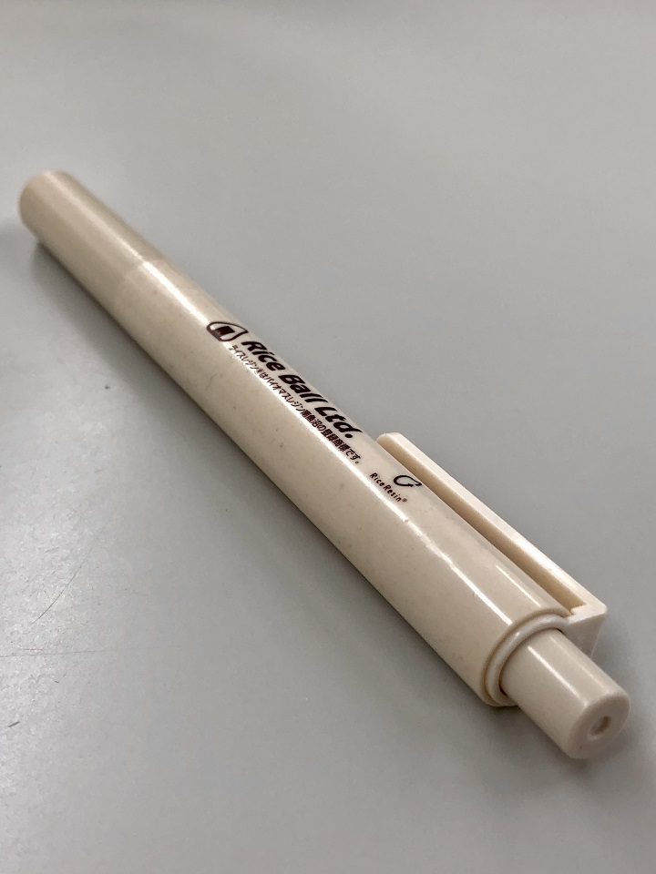 廃棄される非食用の資源米を原料とした国産バイオマスプラスチック「ライスレジン®」を使った、「お米のボールペン」「お米の定規」の取り扱いを始めました。