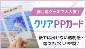 アイドルやタレント、アニメキャラクターなどを印刷したクリアトレカSNS風クリアカードが人気です。どちらにも共通しているのが透明な素材を使っていること。紙のカードには無い見た目や、使い方ができたりするところがウケているんだと思います。