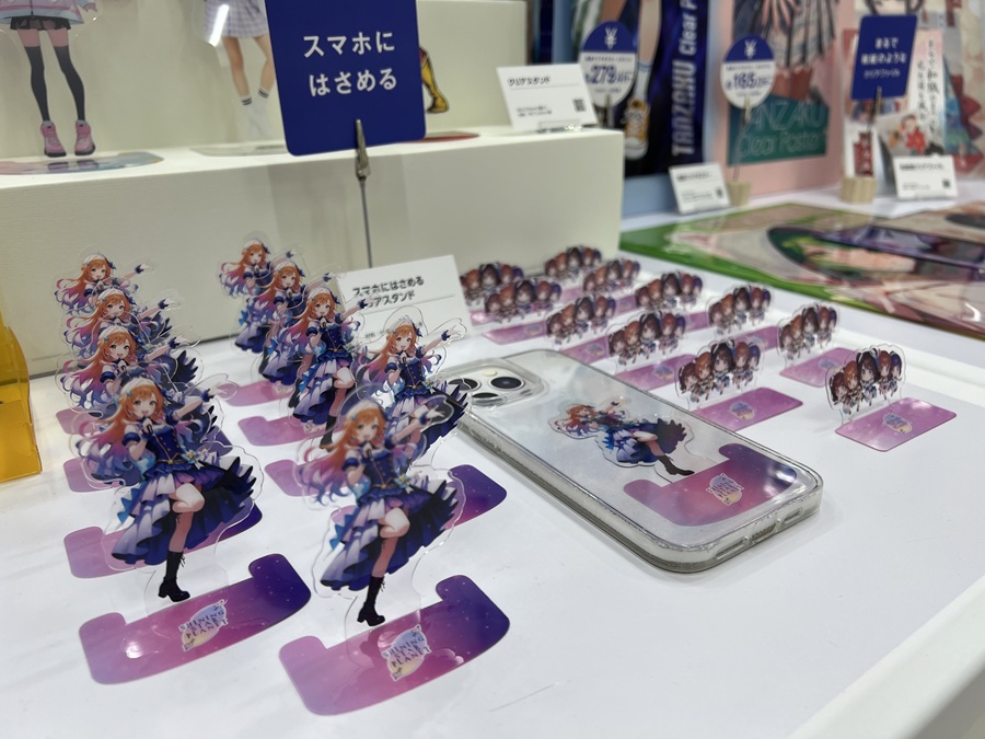 そのほか「スマホにはさめるPPクリアスタンド」も人気で、やはり推し活においてスマホにはさむのはマストのようです。この小さなクリアスタンドは一般的なアクリルスタンドよりも薄くしなやかなPP製。折り曲げればスタンドに、伸ばせばスマホにすっきりはさめます。